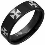 Bague homme acier à croix de zirconiums noirs