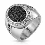 Ce bijou allie un certain confort grâce à son anneau lisse à un design extérieur granuleux, pour un aspect rock ou gothique accentué. Avec des nuances médiévales ou fantastiques, son style audacieux saura séduire l'homme moderne qui n'hésite pas à affirmer sa personnalité. Les éléments brillants rehaussent le métal gris, apportant une touche de sophistication qui souligne encore le caractère viril de cette bague.