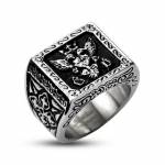 Bague homme noircie en acier entourée de têtes de morts