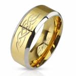 Bague homme tête de mort dorée en acier à gravures florales