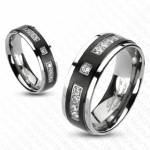 Bague mixte en titane, disponible dans des largeurs et tailles différentes, ornée d'un bandeau central doré par ionisation. Il est paré d'une multitude de ciselures, finement tracées en biais, et est ourlé de deux fins filets nervurés, à quelques millimètres des fines arêtes droites.
