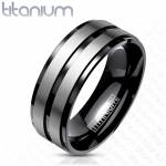 Anneau bicolore cerclé d'un filet central très fin, doré par ionisation, proposé dans neuf variantes de largeurs et de tailles au choix