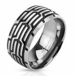 Bracelet à large ruban de cuir noir avec motif zigzag tissé