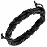 Bracelet en cuir avec lanière beige et croisillons noirs et blancs