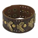 Une bande étroite en cuir lissé consolide l'assemblage des liens réglables autour du poignet, maintenus par de solides manchons.