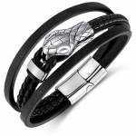 Bracelet en cuir noir et cordes multicolores avec perles diverses