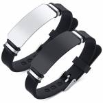 Bracelet hyper élégant au cachet typiquement masculin fait d'un assemblage soigné de deux chaînes et décoré d'une plaque rectangulaire avec une croix en cristaux clairs.