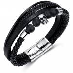 Bracelet homme à maillons de cuir et d'acier avec têtes de loups