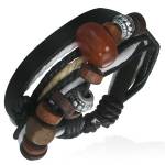 Bracelet homme à tête de mort, tresse et ruban de cuir riveté