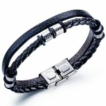 Matière organique et naturelle, le cuir procure un niveau de confort et de chaleur incomparable sur la peau. Les personnes hautement allergiques à certains éléments métalliques, comme le nickel, n'auront en outre plus rien à craindre en portant leur choix sur un bijou masculin en cuir. La fermeture du bracelet s'opère généralement en toute simplicité grâce à des n½uds à coulisse situés à l'arrière, ou à l'aide d'une patte de rabat. L'entretien se révèle enfin d'une grande facilité au quotidien : après avoir laissé agir pendant quelques minutes une eau légèrement savonneuse, il ne vous reste plus qu'à rincer le bijou pour lui redonner son éclat.