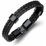 Bracelet homme multi-rangs noir à perles bleues facettées et triangles