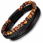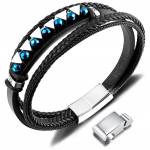 Bracelet homme similicuir à plaque noire avec cranes sculptés
