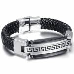 Bracelet homme similicuir noir à plaque décentrée en acier