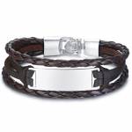 Bracelet homme tresse similicuir à cylindres noirs et irisés