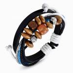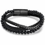 Bracelet triple à tresse similicuir noire et lacets
