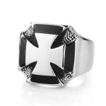 Chevalière homme noire en acier à filins et trio de zirconiums