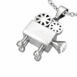 Tel un bateau piraté, retenu par une bélière mobile en bel acier lustré fixée sur le haut mât, ce pendentif noir se balance au gré du vent.