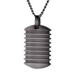 Pendentif masculin en acier de qualité décoré d'un motif central en spirales noires ionisées finement dessinées.